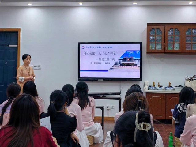 孙慧丽主任以“根治失眠,从‘心’开始——感受五音疗疾”为讲座主题,分别从“睡眠及其重要性”“引起失眠的原因”“改善失眠的办法”“体验中医音乐治疗”等方面展开分享。首先,她从专业理论和自身工作经验出发,结合成功治疗失眠患者的案例,分析困扰他们良久且渴望被医治的“失眠”问题,总结古琴音乐对于治疗失眠的益处。接着,从何为古琴、演变过程、琴谱发展等方面,将古琴知识娓娓道来,全面阐释了古琴的音乐性和文化性。