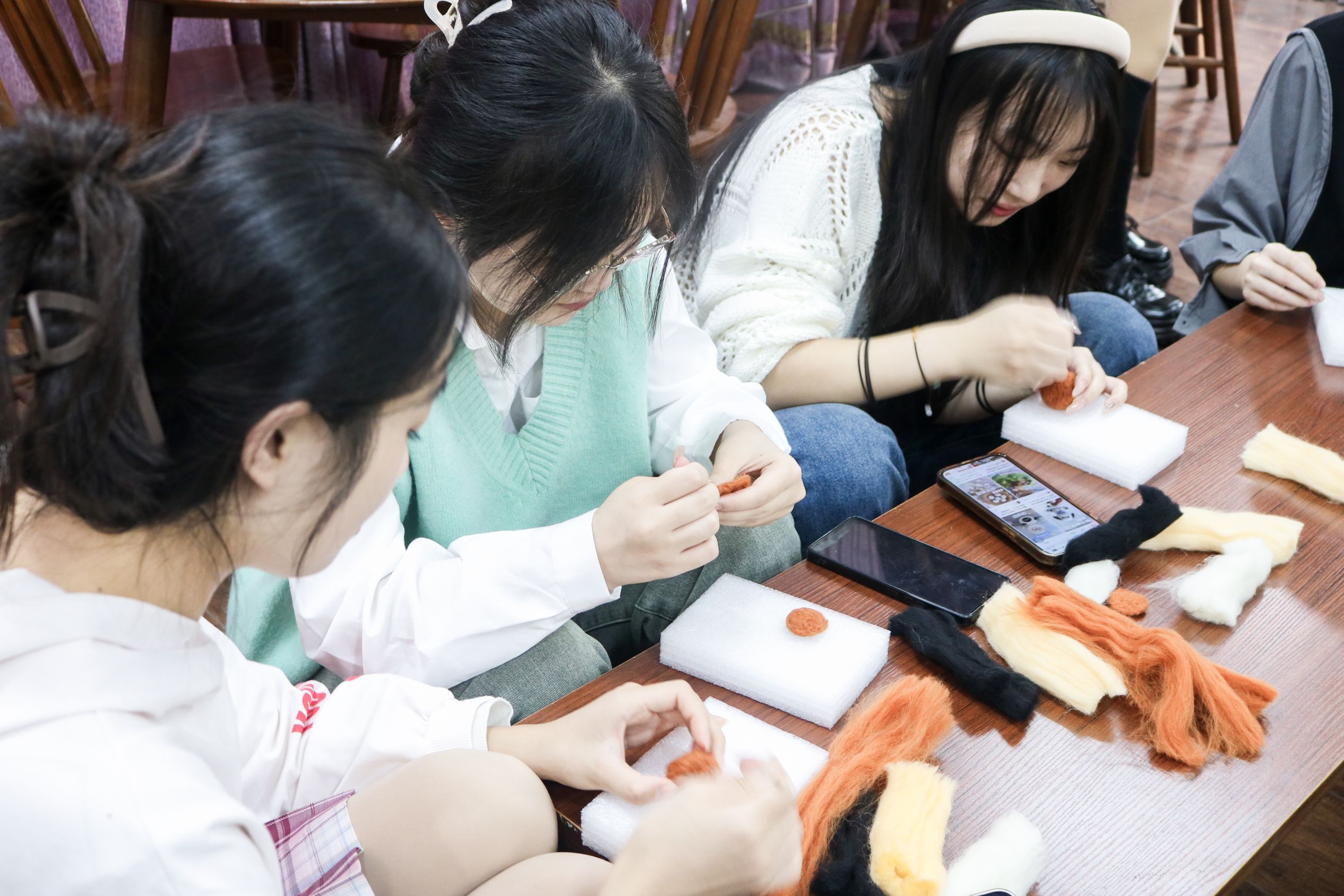 本次毛毡手工课程以认识和制作毛毡手工工艺为教学重点。邀请同学们汇聚一室,体验手工毛毡的乐趣,使大家既感受到接触新鲜事物时内心激动,也能体会到艺术的独特魅力,即使身在学校也能寻得志同道合的伙伴,共享课余时光。