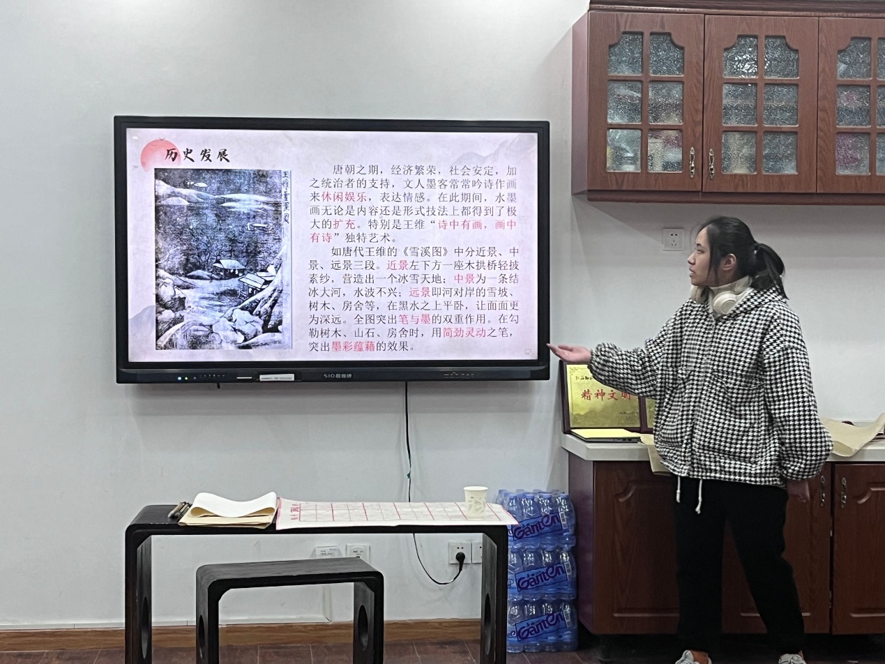 本次绘画课程以水墨画为主题。课程主要讲述了水墨画的历史发展、创作的工具和内容,使同学们对于水墨画有更好的理解;同学们也在亲手创作水墨画的过程中体会到到古人创作水墨画时的心境,感受中国优秀传统文化的独特魅力。