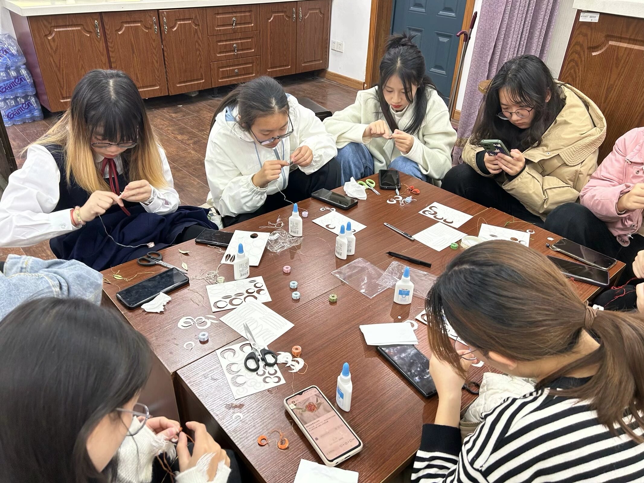 本次缠花课程以缠花为制作对象,邀请同学们欢聚一堂,亲手制作缠花,感受传统非遗文化的魅力,加深对于中华优秀传统文化的认识。同时,活动也使同学们感受到泱泱大国千百年沉淀的文化底蕴,在传统与现代的碰撞中培养文化素养。
