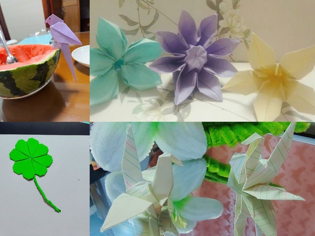 本次折纸线上活动以折纸为制作对象。在本次折纸活动中,同学们不仅学习了多样的折纸技艺,还经历了一次心灵的旅程。在折纸的过程中,同学们心中的烦躁和杂念逐渐消散,取而代之的是一种平静和满足。每一次折叠都是对内心的一次调整和净化,让同学们在平凡的纸张上找到了美的源泉和生活的意义。