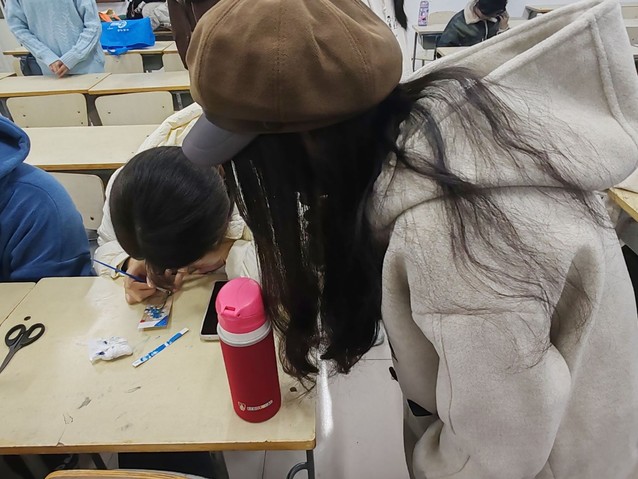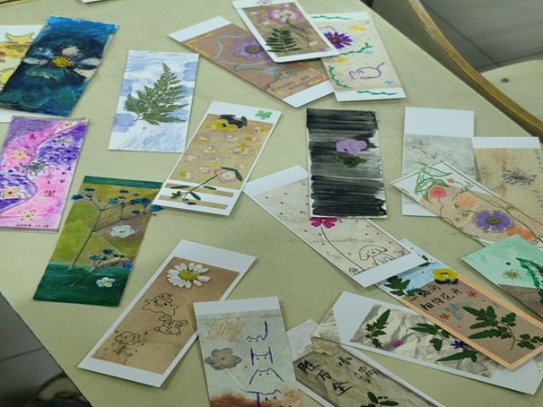 这次课程教学内容为压花书签制作,小老师费娇首先带领同学们学习PPT的内容,介绍了压花的历史起源、压花特色、种类以及压花的制作方法。在小老师的细心指导下,大家充分发挥自己的创造力和想象力,将花朵与诗意交相融合,制作出一幅幅独具个性的压花作品。当看到娇艳欲滴的花朵在自己手中变成可以长久保存的艺术品时,大家都成就感满满。这次活动传承非遗压花技艺,借花材互动,通过花朵与笔触的结合,提升同学们环保意识,使大家亲近自然、敬畏呵护自然。师生共创压花,灵感创意交融,丰富文化生活,增进情谊,为校园营造和谐温馨、富有活力与底蕴的氛围,推动自然与校园文化的深度融合。