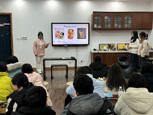本次课程教学内容为超轻粘土冰箱贴制作。小老师袁明英首先带领同学们学习PPT的内容,介绍了超轻黏土的背景,借助形象的图片与视频为同学们提供详细的指导。接着,再进行步骤拆解,很好的解决了大家制作的疑惑,让同学们充满信心。最后,在小老师和助教的安排指导下,大家迫不及待地开始分组制作超轻黏土冰箱贴,学堂里瞬时响起了剪刀与擀面杖之间的交响乐。在欢声笑语中,令人垂涎欲滴的粘土甜点,憨态可掬的卡皮巴拉,气宇轩昂的光仔……一个又一个可爱的形象于同学们的手中诞生,温馨欢乐的气氛充盈了整个教室。活动结束后,大家合影留念。