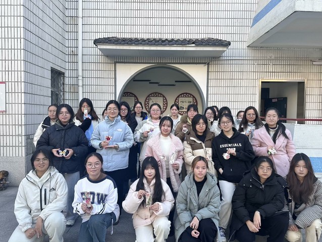 本次课程教学内容为压花书签制作。小老师费娇首先带领同学们学习PPT的内容,介绍了冬日节气和书签的种类,借助压花书签作品图片丰富同学们对压花构图的认识。接着,通过对本次课程主角——压花书签制作的详尽阐释,同学们对自己的动手实践充满了热情。最后,在小老师和助教的安排指导下,大家迫不及待地挑选干花、设计摆放、细心粘贴、自由创作,一步步创造出精致的压花书签,还选取了干花、小挂件作为书签配饰,使书签更加精美。娇艳的压花镶嵌在书签上,灵动的小挂件随风摇曳,整个教室洋溢着欢乐的氛围。活动结束后,大家合影留念。